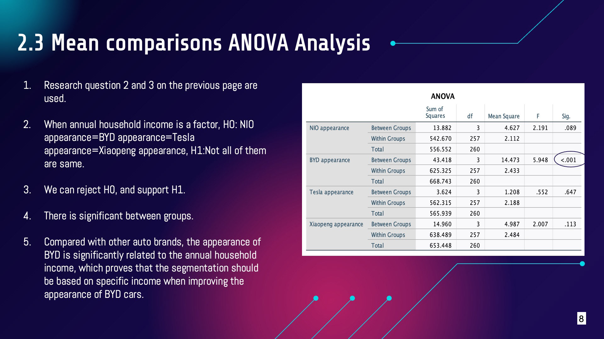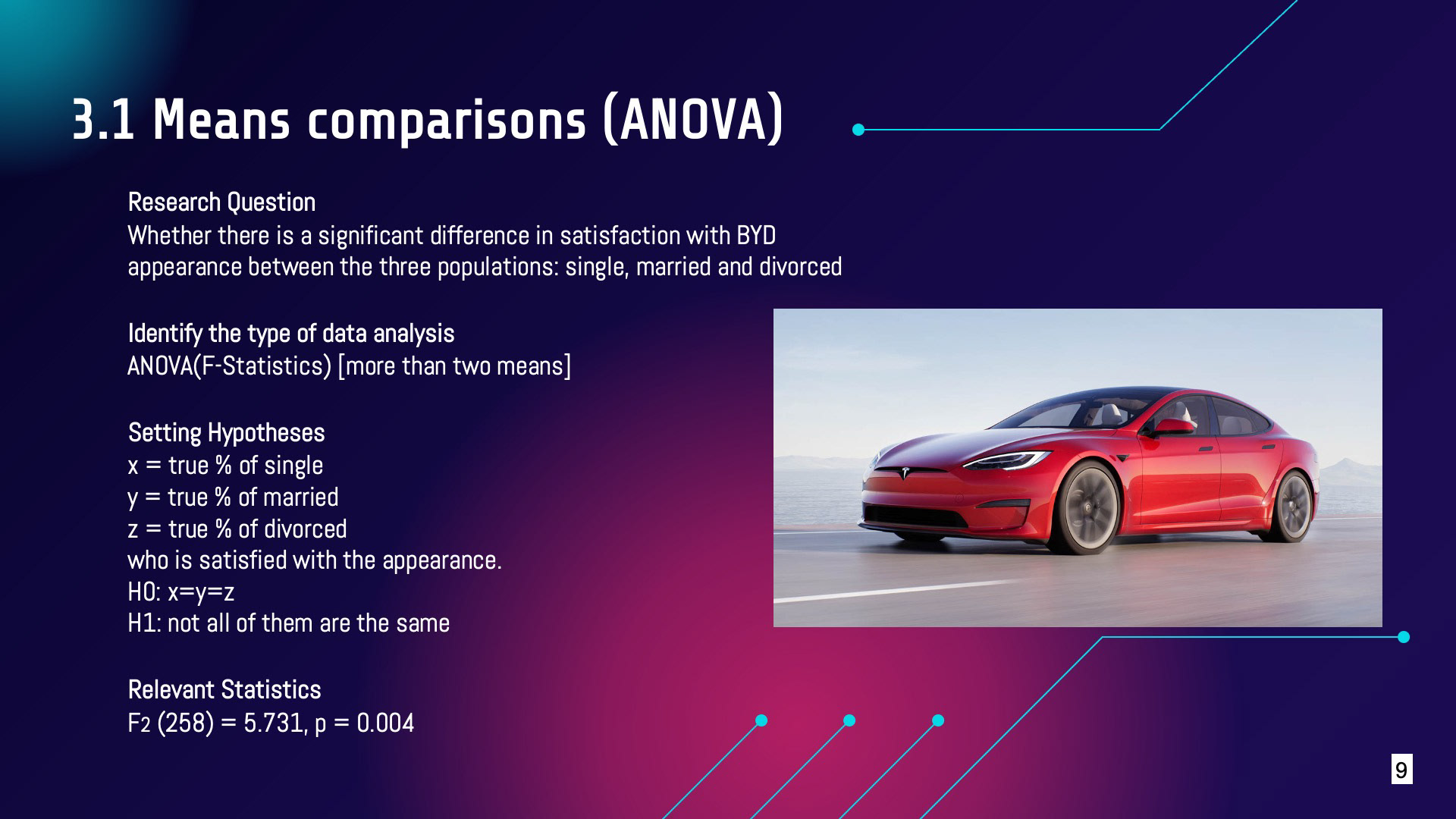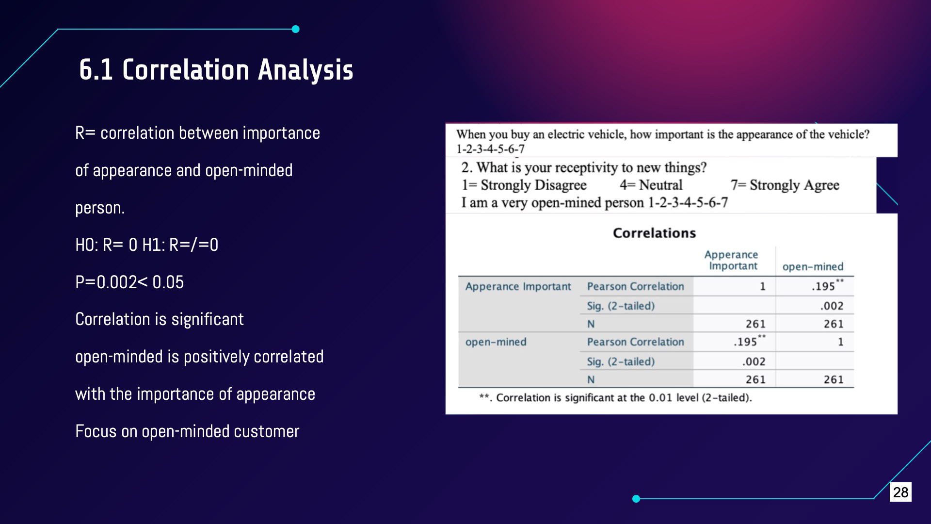 A market research report for ELECTRIC CAR companies using Correlation, ANOVA, Regression Analysis and MDS on SPSS